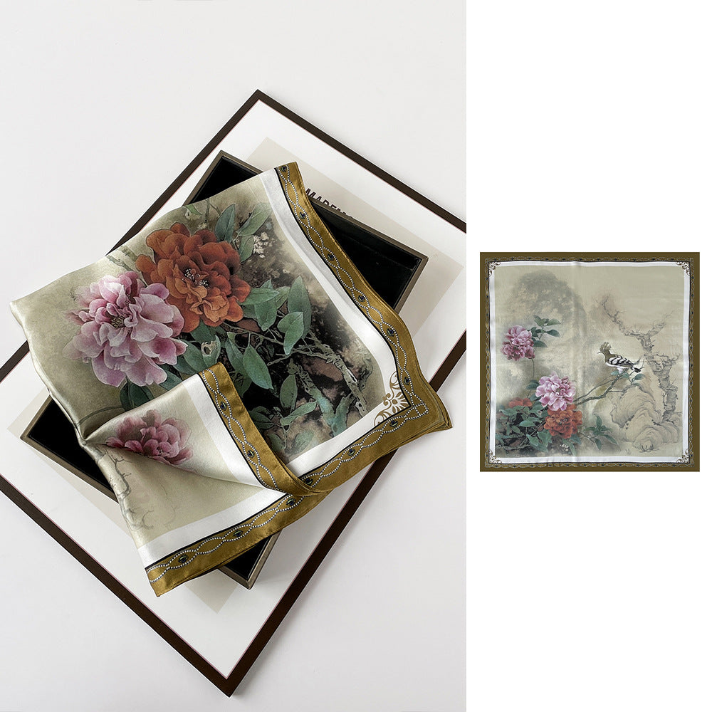 inRealSilk Black and White Magpie 66cm*66cm 100% Silk Small Square Scarf Small Neckerchief with Suit